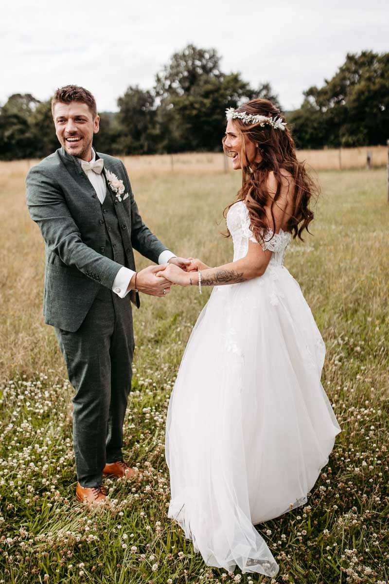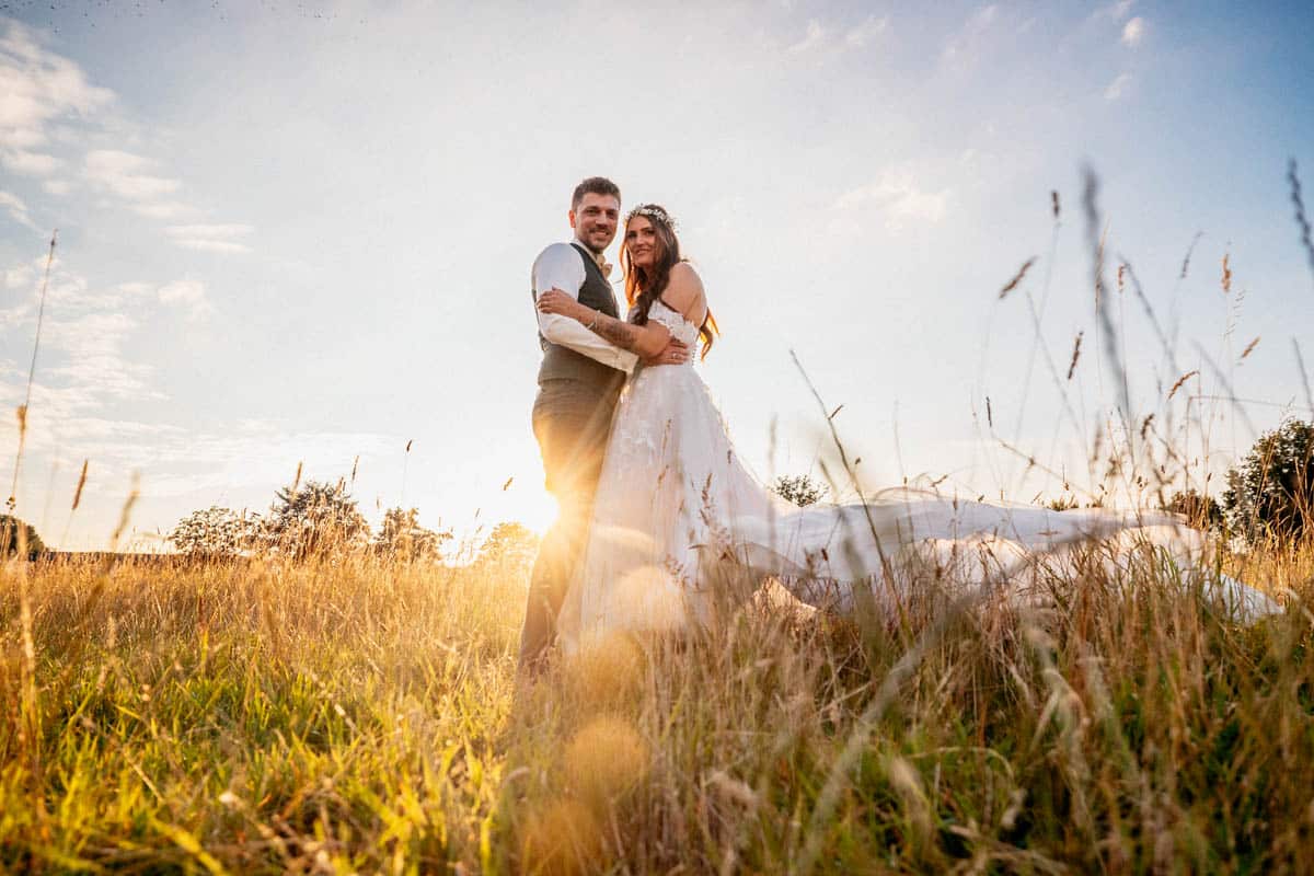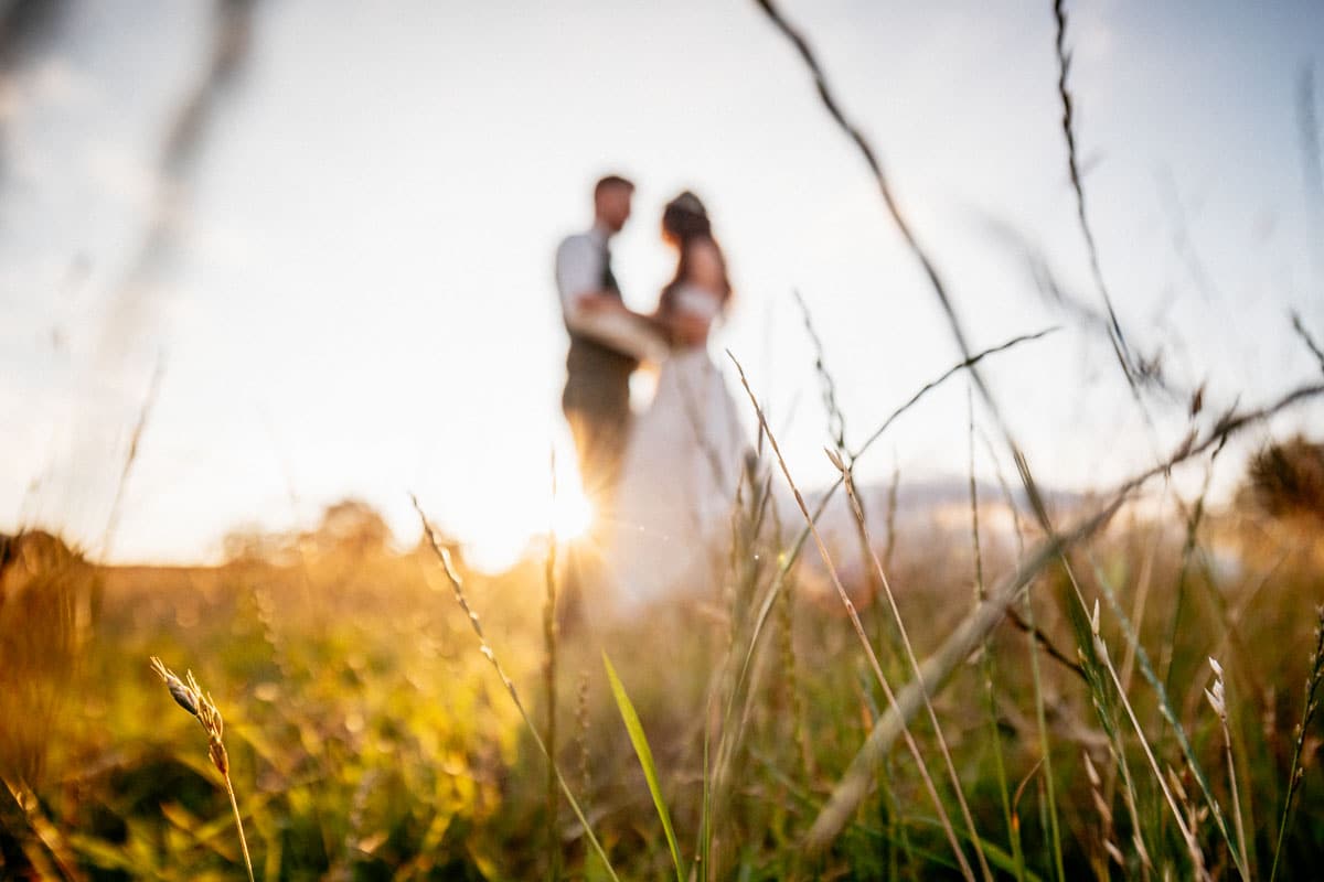 Für das Portrait-Shooting haben wir gleich zwei Stimmungen eingefangen: Erst fröhliche, lebendige Bilder bei strahlendem Sonnenschein im Grünen, später dann romantische Aufnahmen im goldenen Licht des Sonnenuntergangs. Diese Mischung macht die Serie der beiden für mich besonders.